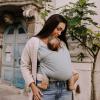 Buckle carrier suitable from newborn to approximately 12 months. Soft but supportive fabric. Front and hip carries only